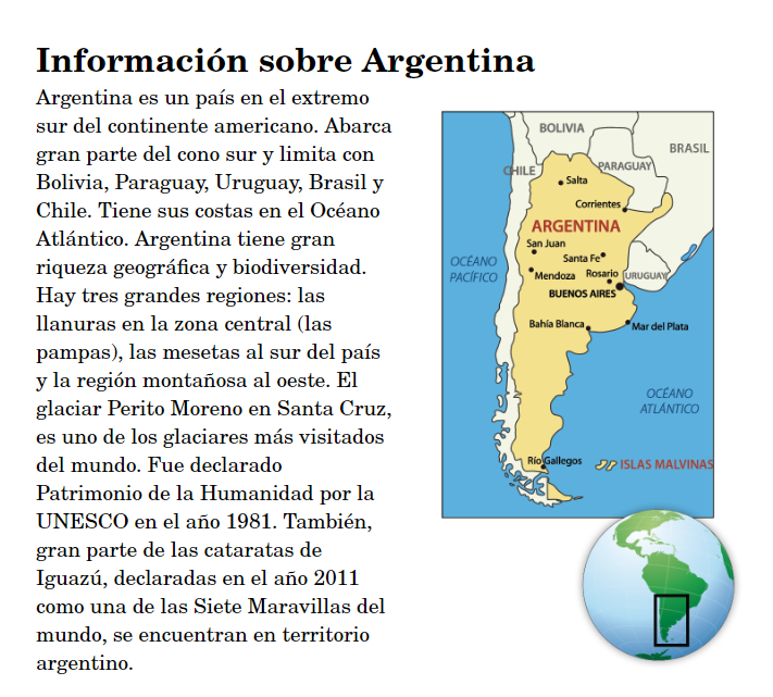 What are two things you would like to do when you visit Argentina. Use the resources above.