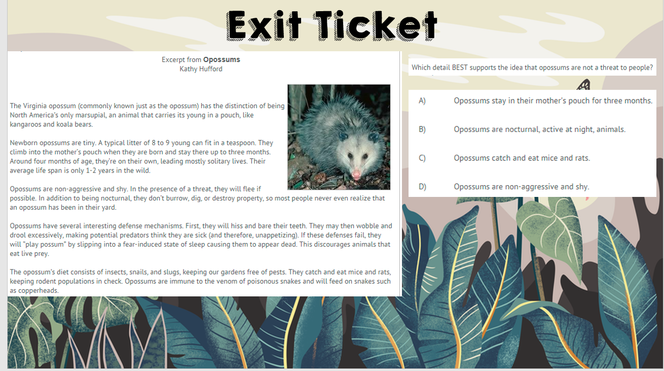 Which detail BEST supports the idea that opossums are not a threat to people?