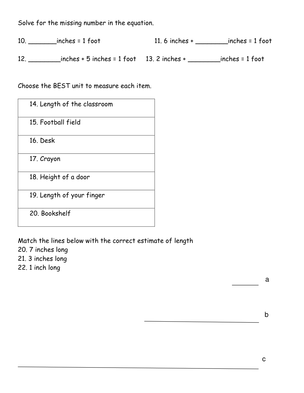 Match the lines below with the correct estimate of length.