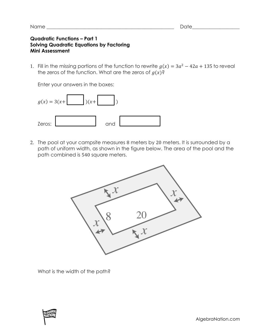 Fill in the blanks to rewrite with the correct factors. g(x)=3(x+ )(x+ )HINT: Can the equation be simplified before you factor?