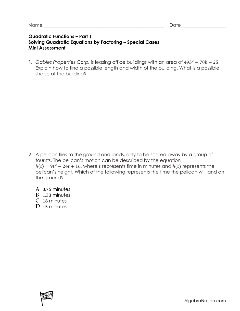 When will the pelican land on the ground?HINT: Use the quadratic Formula