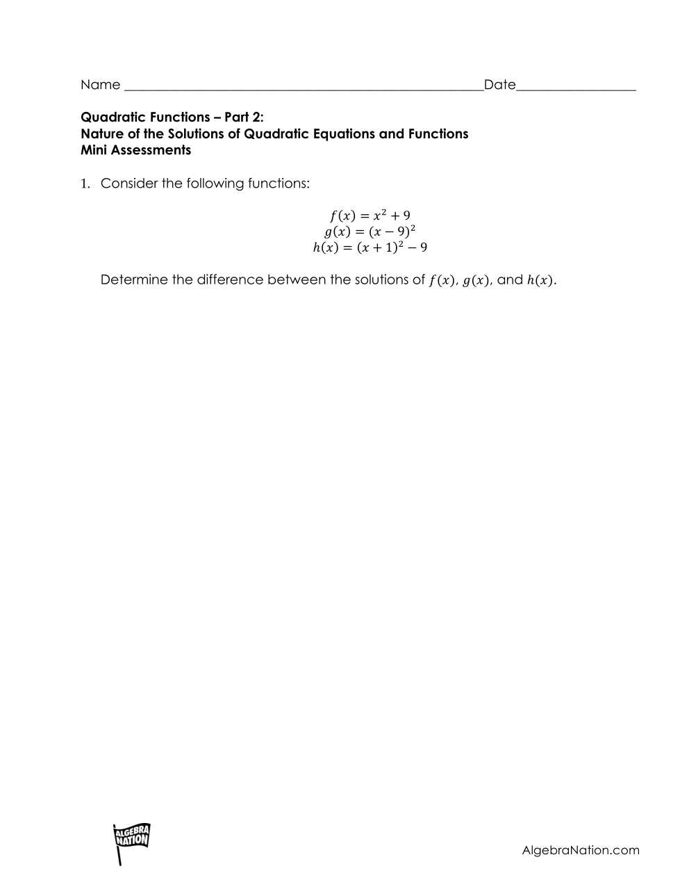 f(x), g(x), h(x) all have a different number of solutions. Match each function with the correct number of solutions.