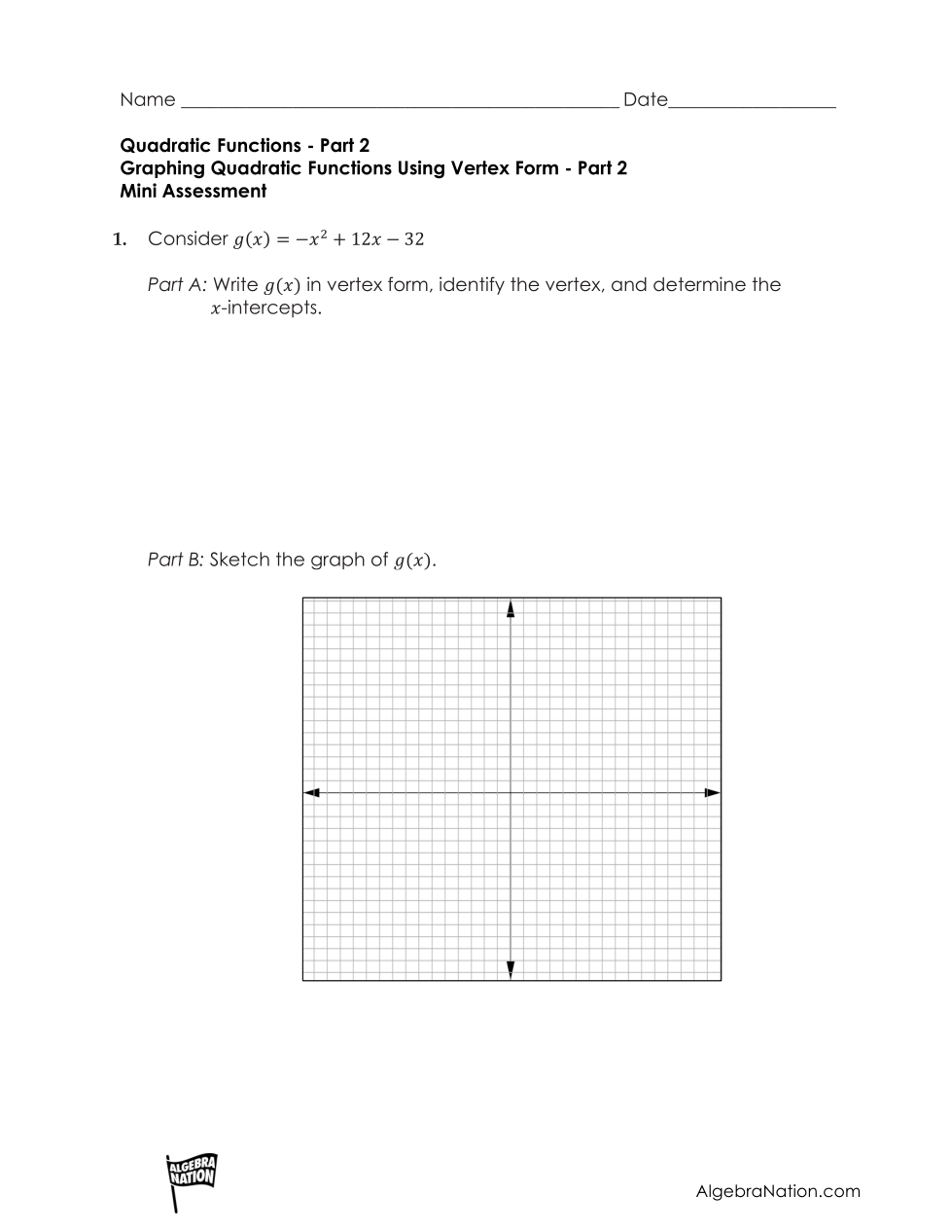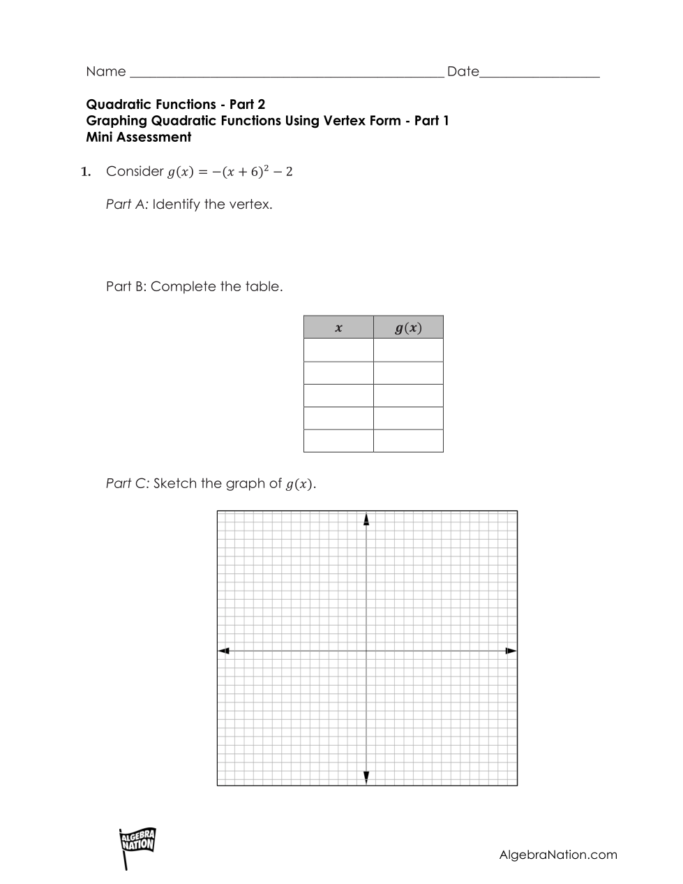 Lesson 6.6 Write g(x) in vertex form. Vertex form is y=a(x-h)^2+k HINT: Pay attention to the negative leading coefficient.
