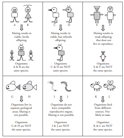 Consider all of the pairs of organisms in Model 2 that are not of the same species. What criterion are missing in all cases that could be used to define a species?