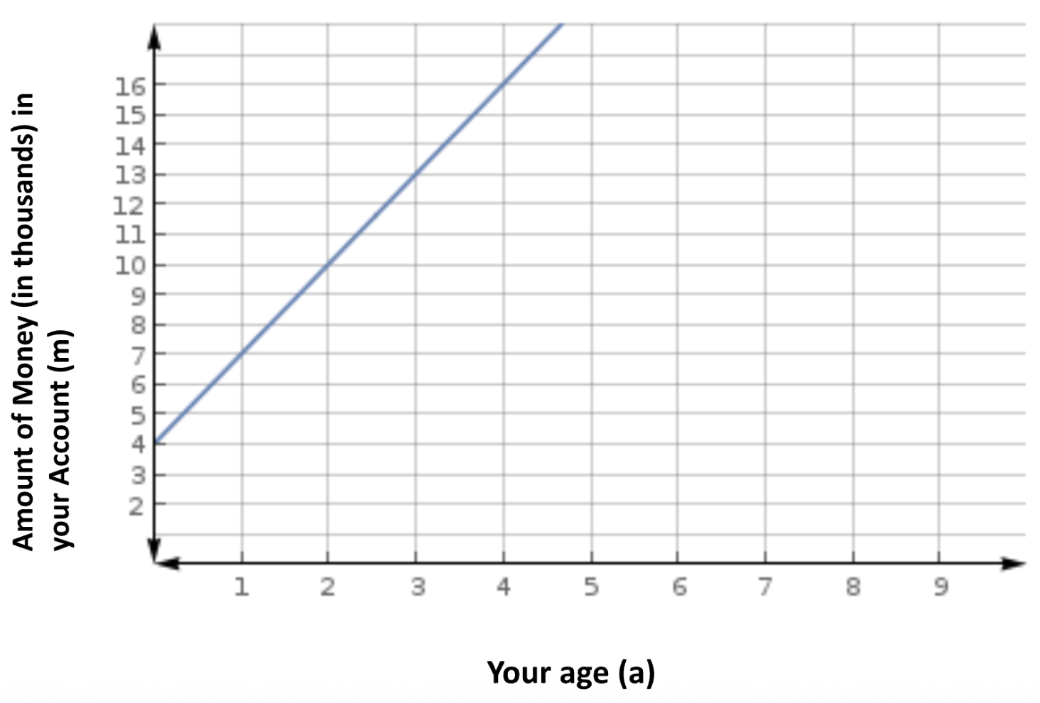 When Waad was born, her parents opened a college savings account for her. Each year on her birthday, her parents deposit money into that account. Below is a graph that represents her savings account.