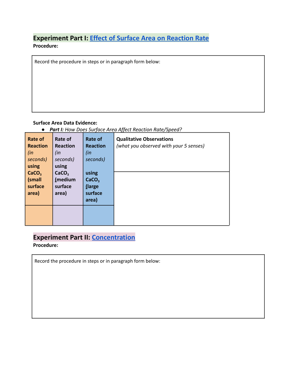 Watch the video for Experiment 1: Surface Area and record the procedure and data from the video.
