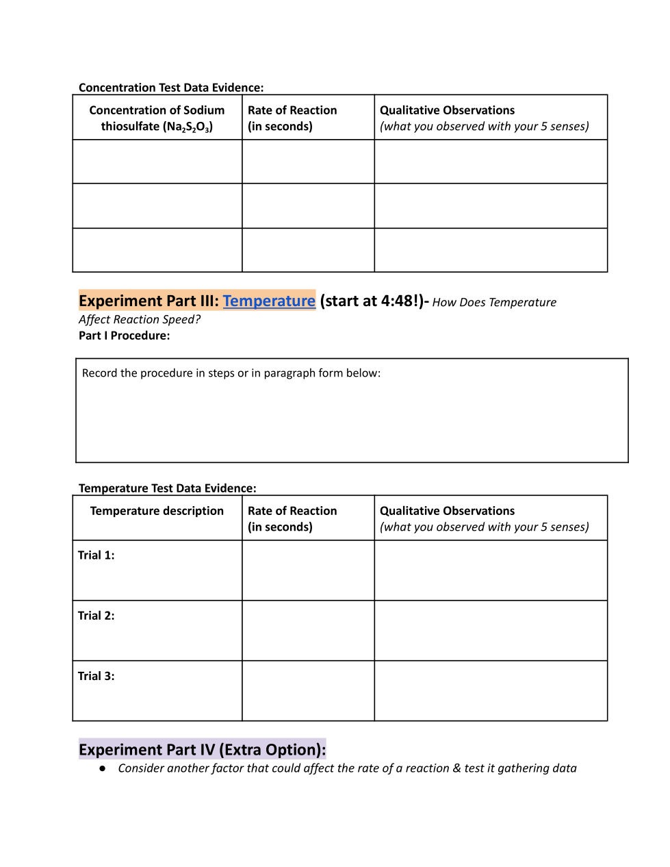 Watch the video for Experiment 3: Temperature and record the procedure and data from the video.