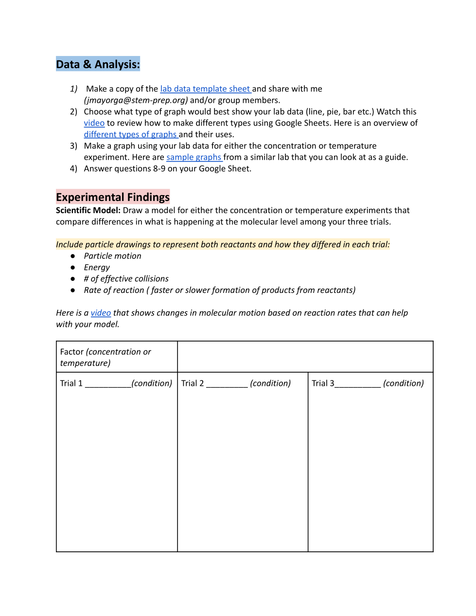 1. Make a copy of the lab data template sheet and share with me (jmayorga@stem-prep.org) and/or group members.