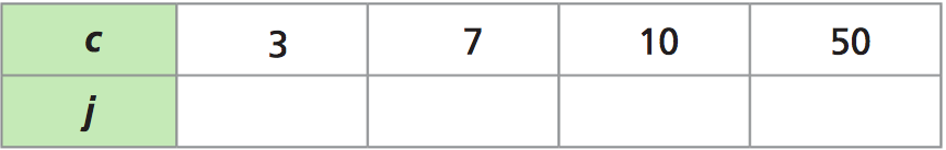 Los julios y las calorías son dos unidades de energía diferentes. La ecuación j = 0,239c relaciona las medidas, donde c representa las calorías y j los julios. Completa la tabla.