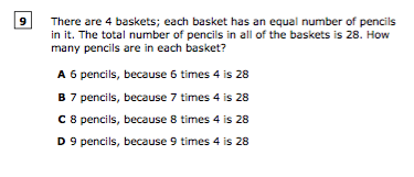 There are 4 baskets; each basket has an equal number of pencils in it. The total number of pencils in all of the baskets is 28. How many pencils are in each basket?