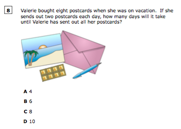 Valerie bought eight postcards when she was on vacation. If she sends out two postcards each day, how many days will it take until Valerie has sent out all her postcards?