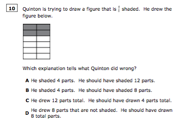 Quinton is trying to draw a figure that is 4/8 shaded. He drew the figure below.