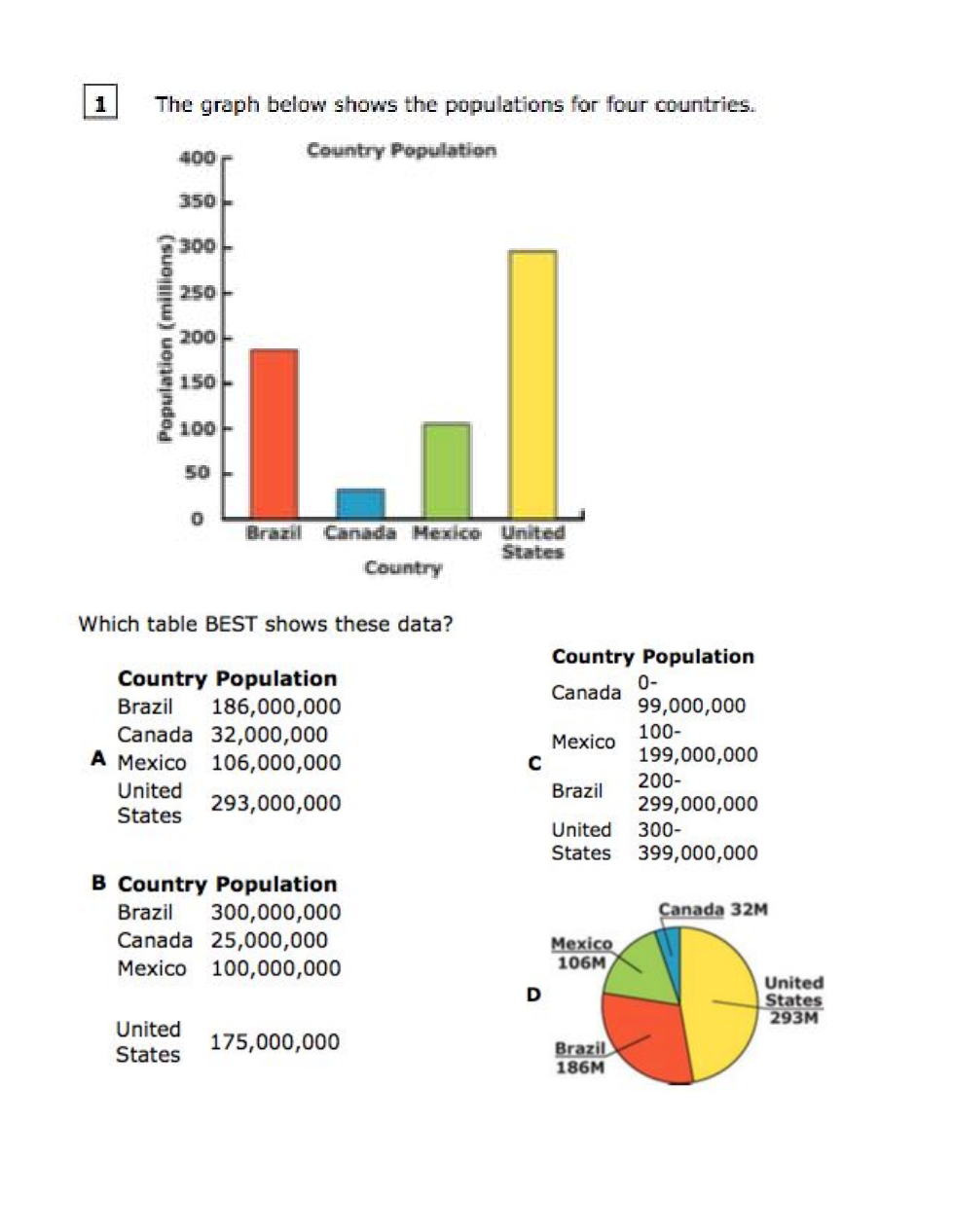 The graph below shows the populations for four countries.