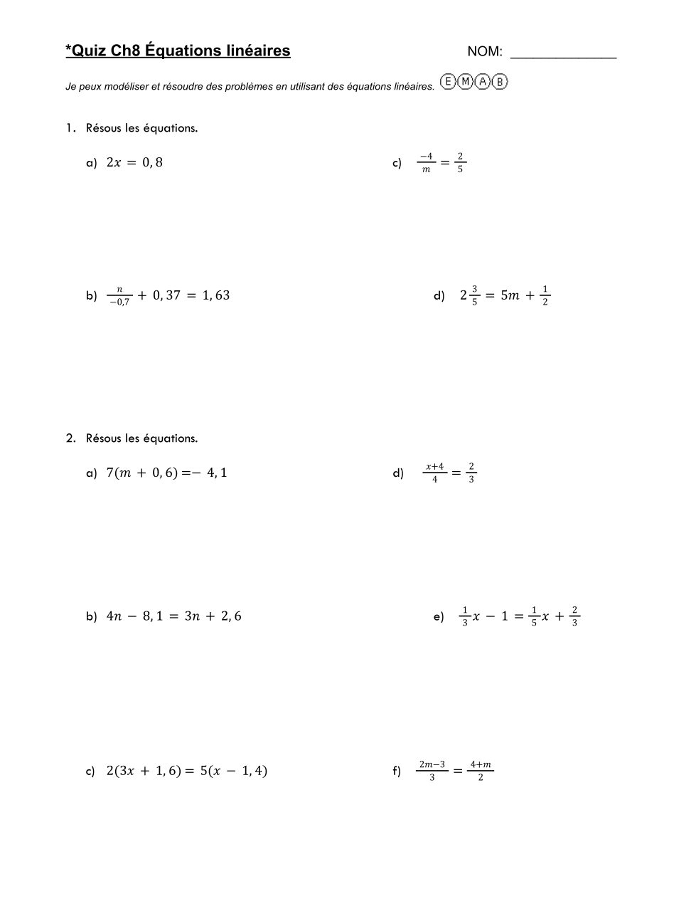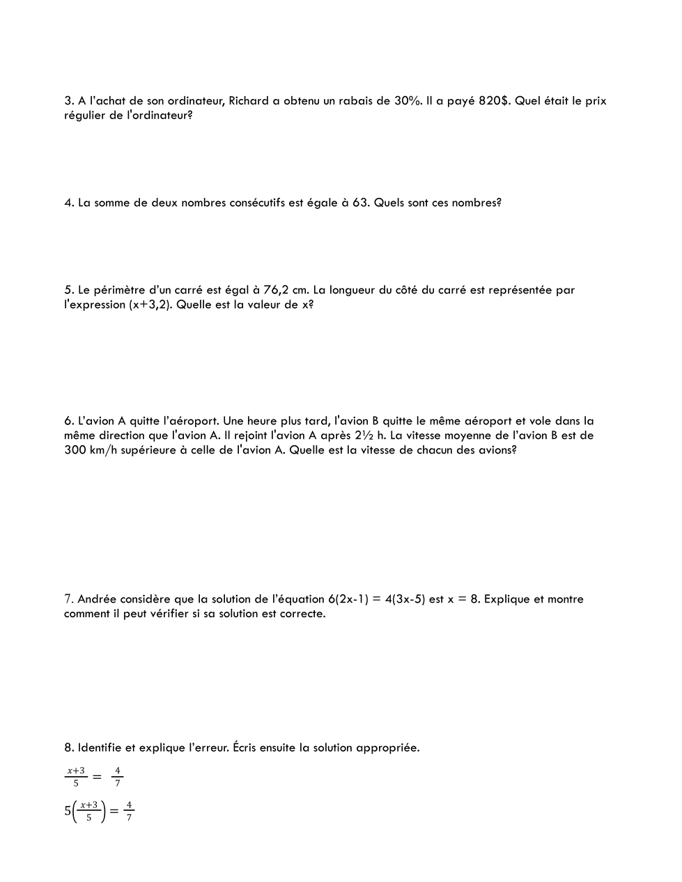 Math 9FI - Quiz - Algèbre (Ch 8)*