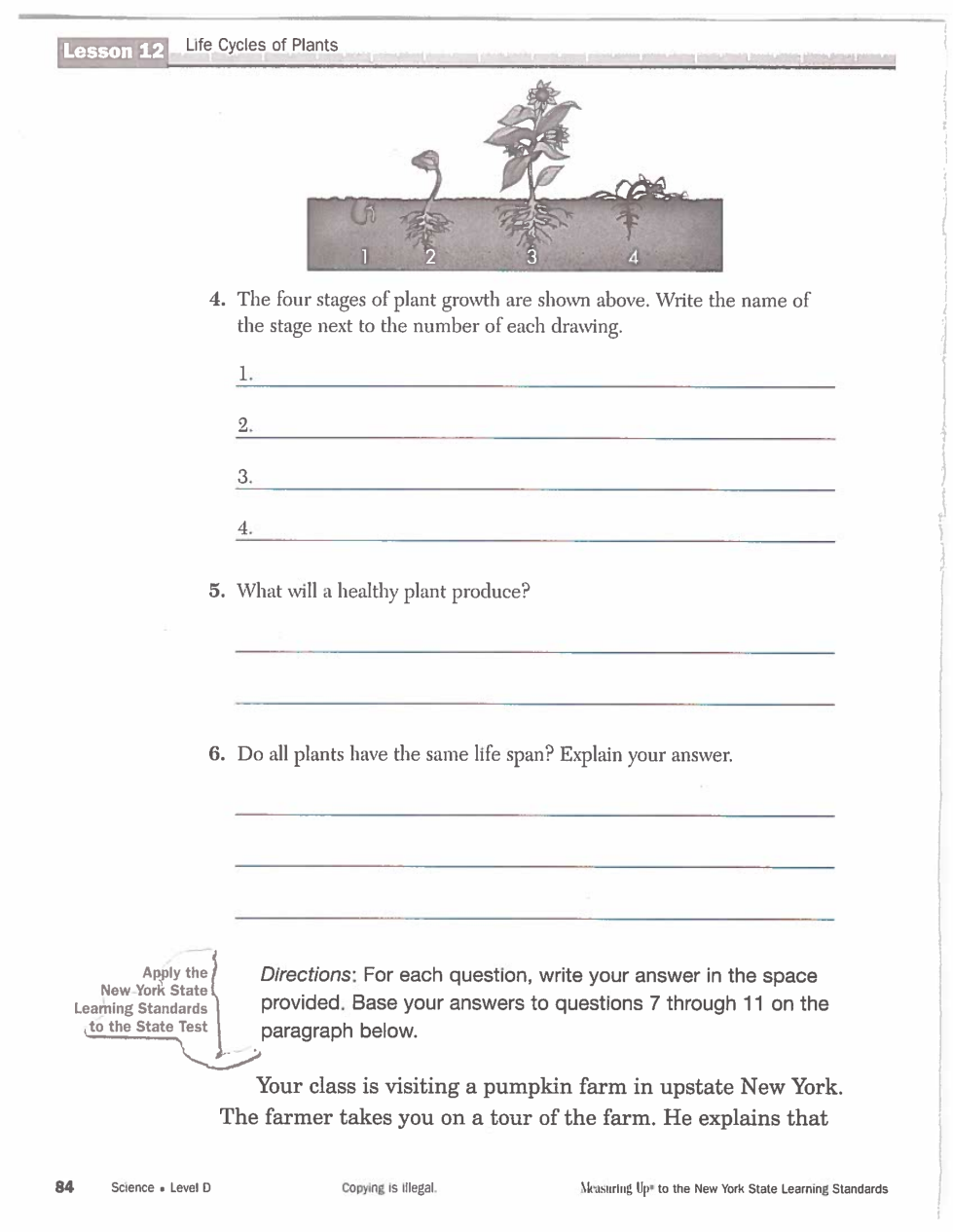 The four stages of plant growth are shown. Match the stage number to the correct label.