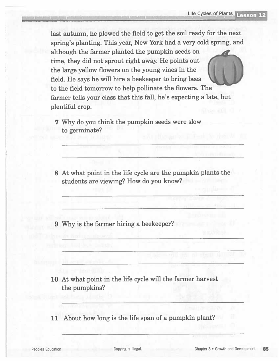 At what point in the lifecycle will the farmer harvest the pumpkins?