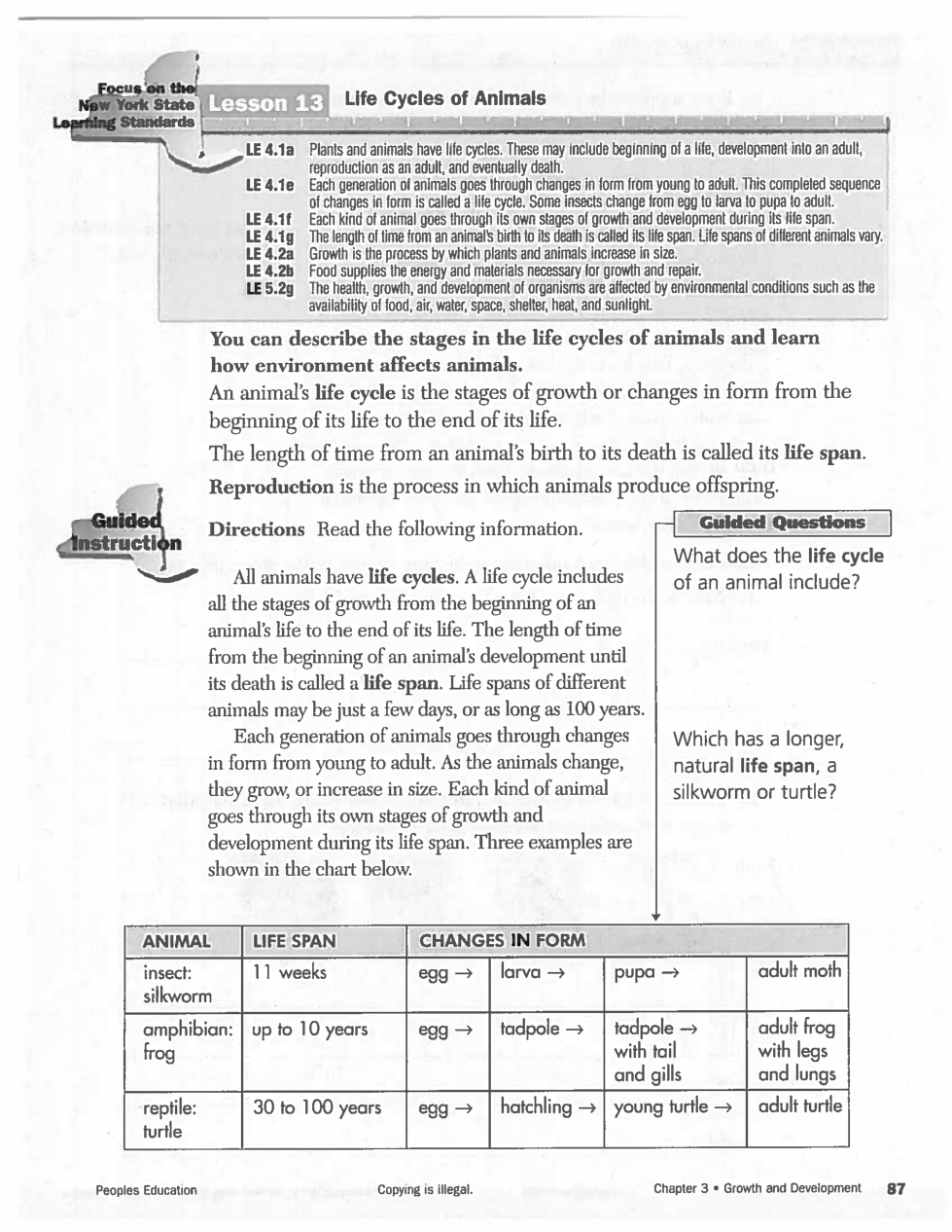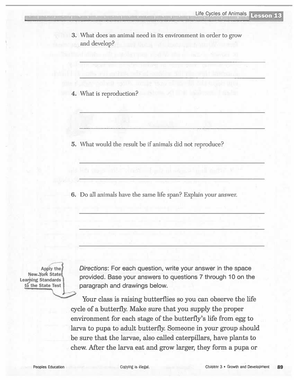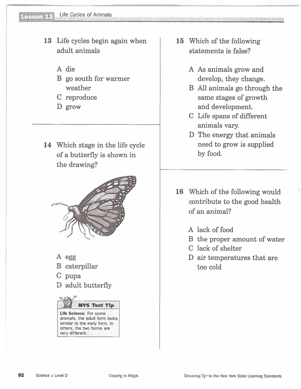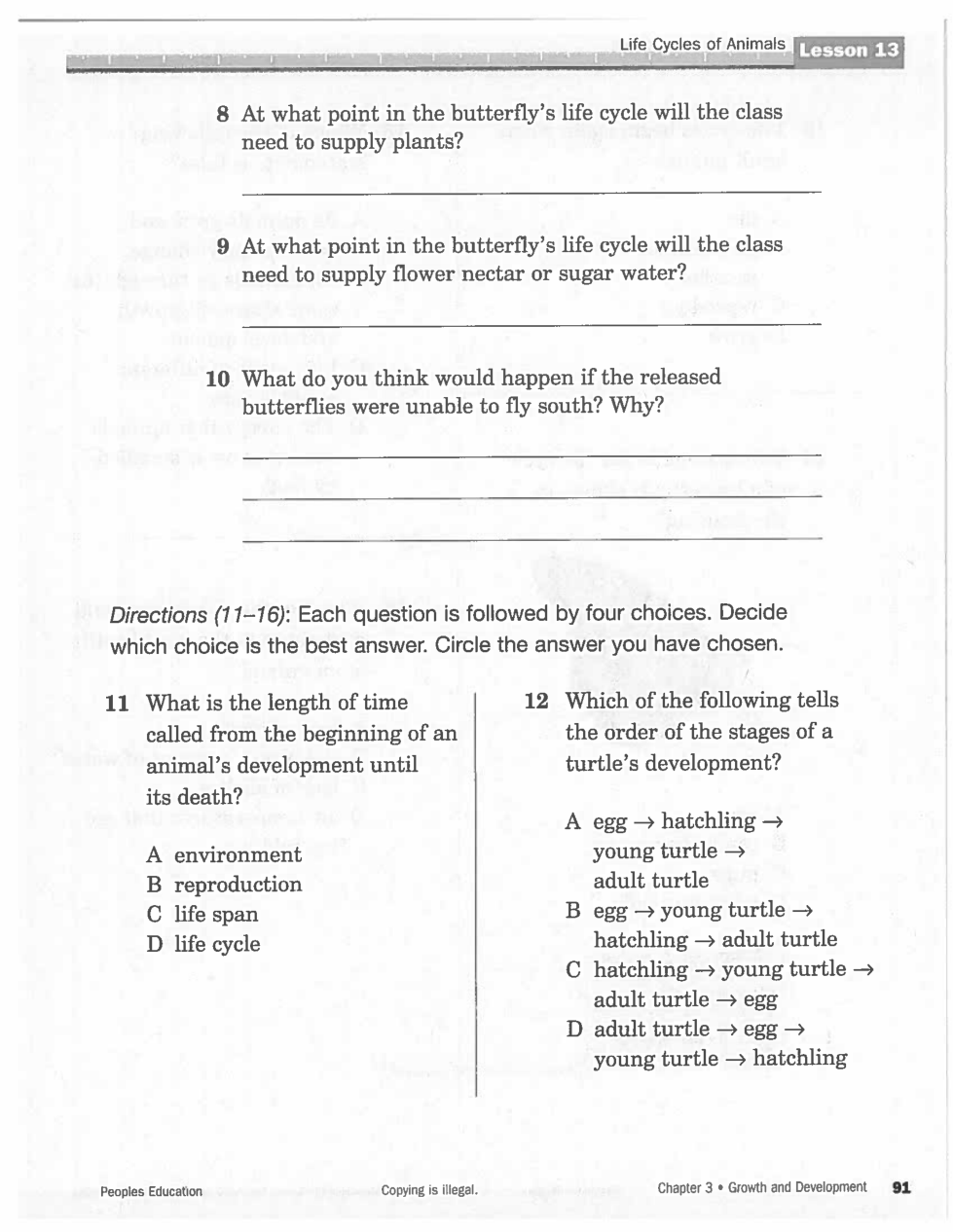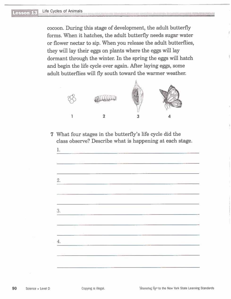 What four stages in the butterflies life cycle did the class observe? Describe what's happening in each stage.