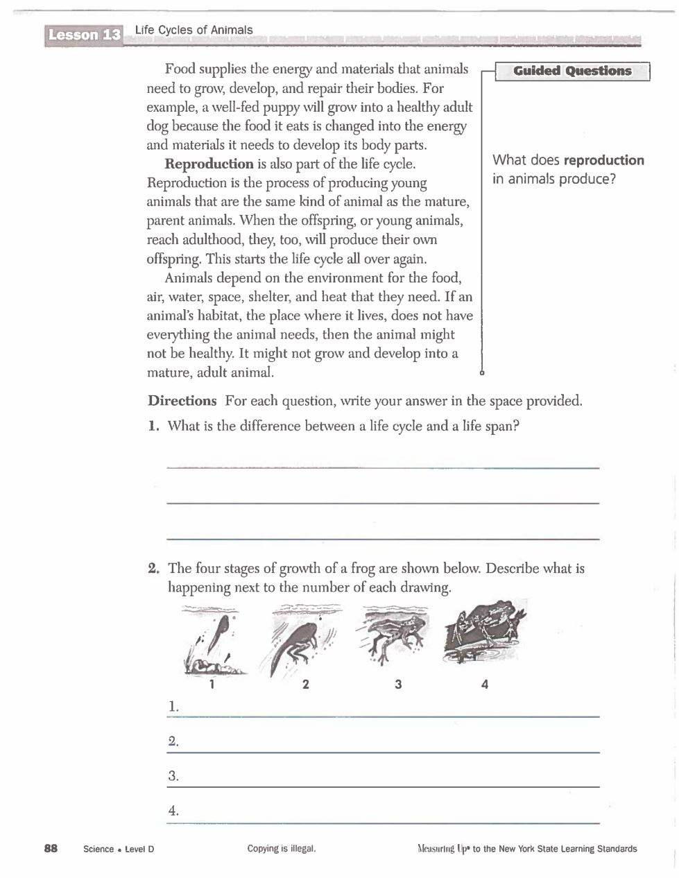 The four stages of growth of a frog are shown below. Describe what is happening next to the number of each drawing.