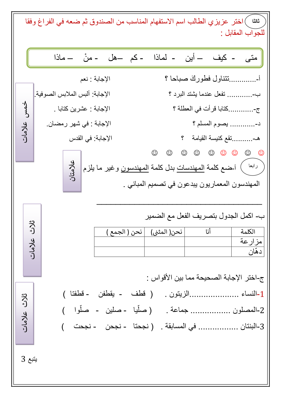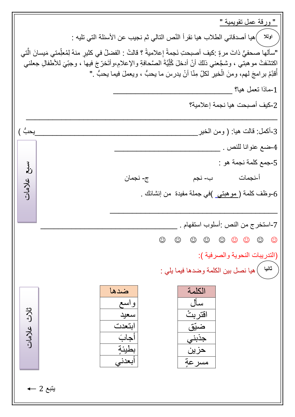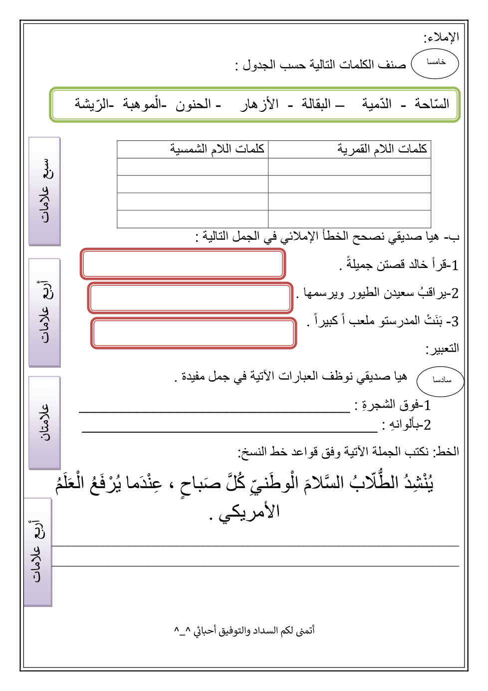 إختبار اللغة العربية للصف الرابع والخامس