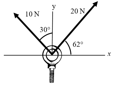 The two forces act on the eye bolt above. Determine the magnitude of the resultant force.