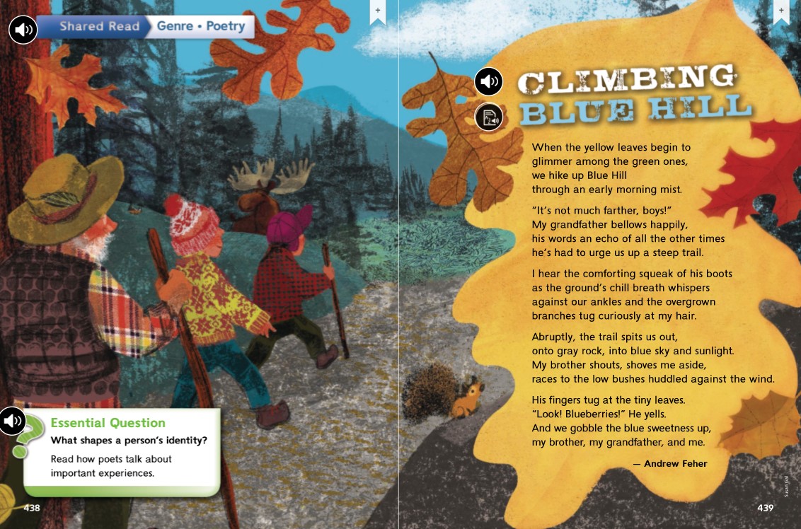 If personification is giving human qualities to nonhuman things such as animals, objects or ideas, which of these following phrases is using personification from "Climbing Blue Hill"?