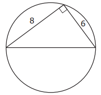 The diagram below shows a circle with an inscribed right triange and some of its measurements, in units. Based on the diagram, what is the circumference of the circle?