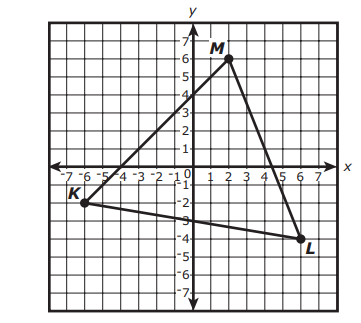 Triangle KLM, shown on this coordinate plane, will be dilated by a scale factor of 1/2 with respect to the origin.