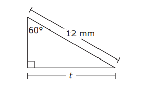 A right triangle and some of its measurements are show in this diagram. based on the measurements given, what is t?
