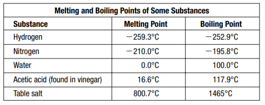 Which substance in the table has a melting point closest to room temperature (20 oC)?