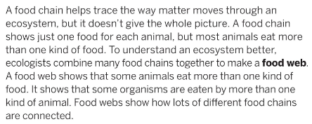 What does a food web show? Read page 16 to help you answer this question.