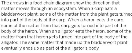 What do the arrows represent in this model? Use the words direction and food matter (molecules) in your answer. Read page 14 to help you answer this question.