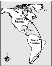 A species of bird migrates from South America across the Atlantic Ocean to its summer breeding ground in northern Canada. The birds stop on the east coast of the United States to eat the eggs of horseshoe crabs. The migration route of these birds is shown on the map below. Which of the following changes would most threaten this species of bird with extinction?