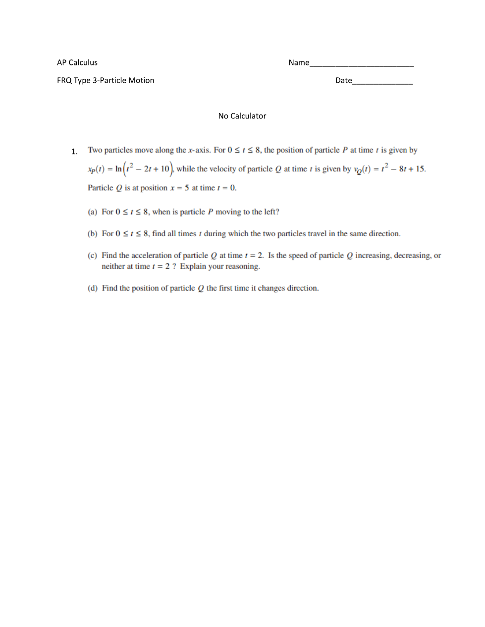 FRQ Type 3-Particle Motion