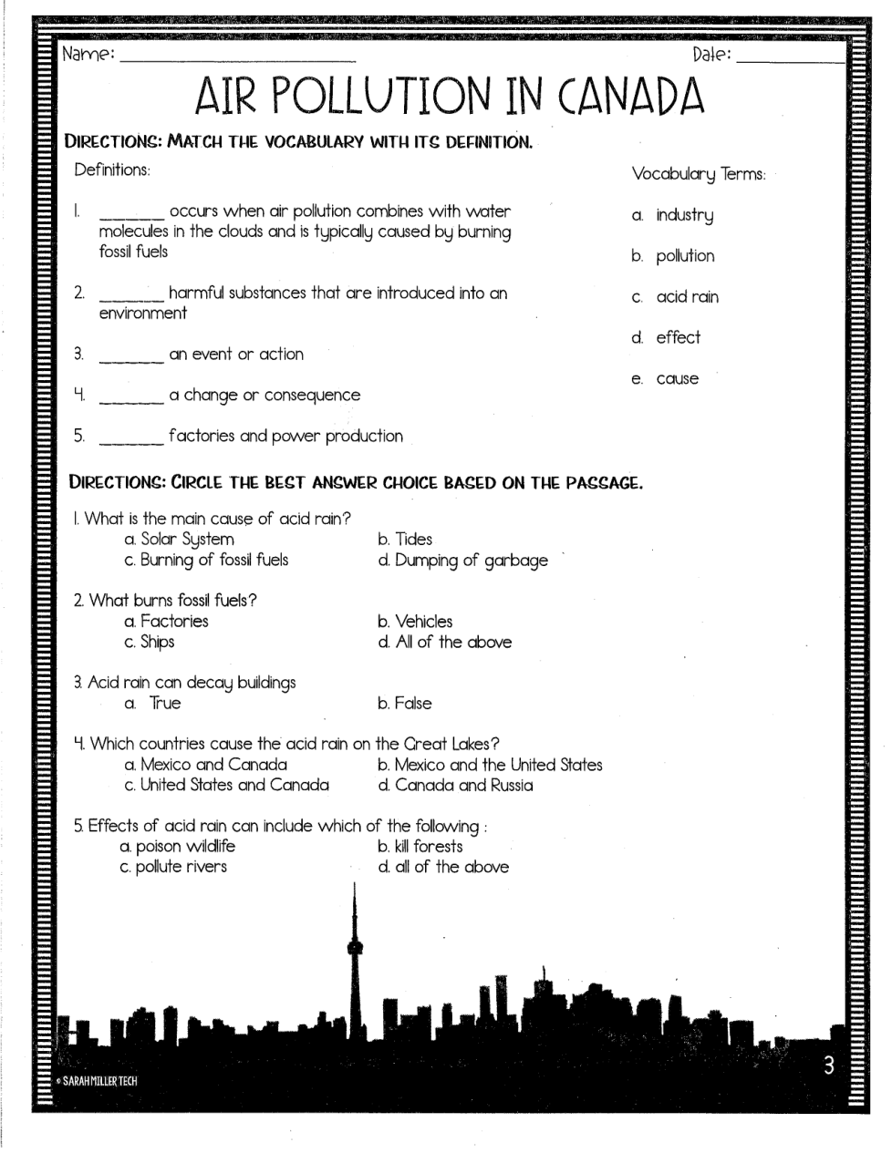 Be prepared to discuss the causes and effects of air pollution in Canada.