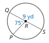 Find the length of minor arc PQ in circle R with a diameter of 9 yards. Use a calculator to round your answer to the nearest tenth of a yard.