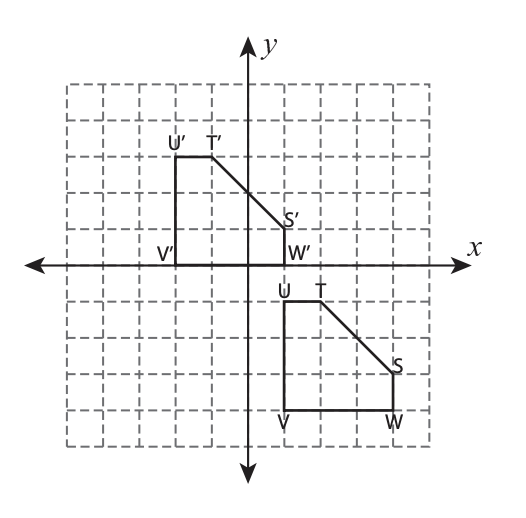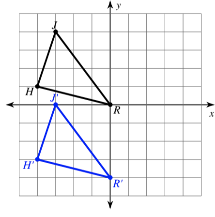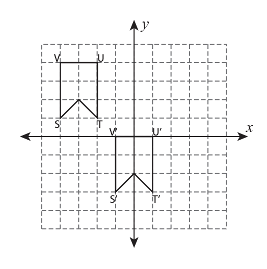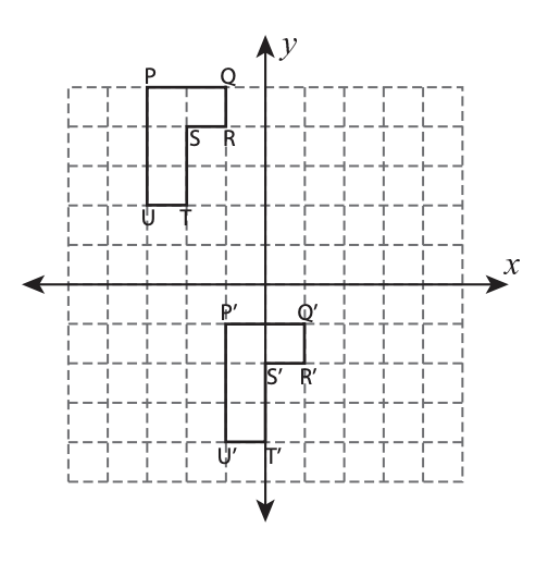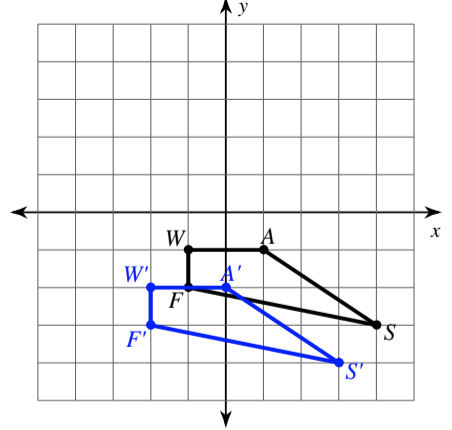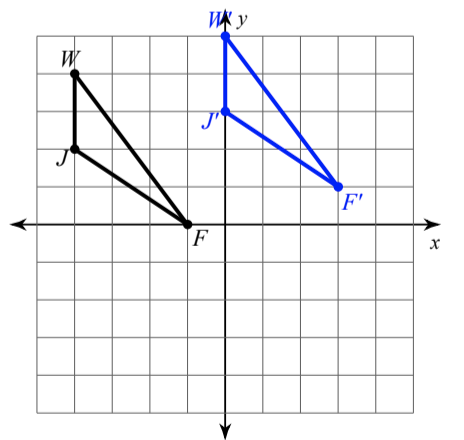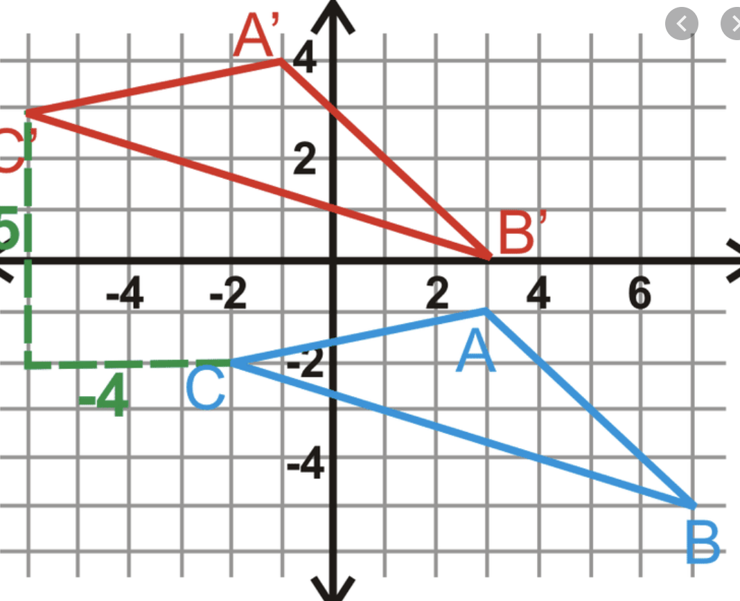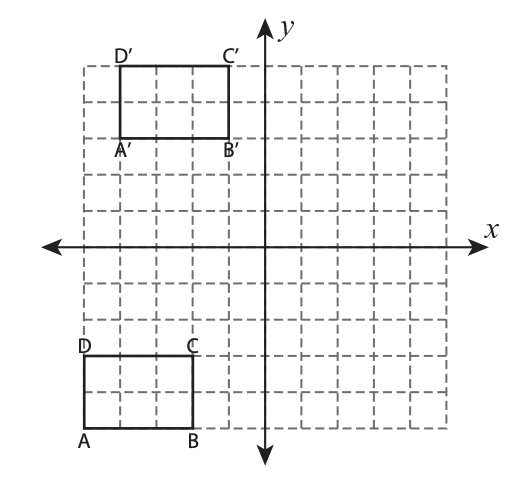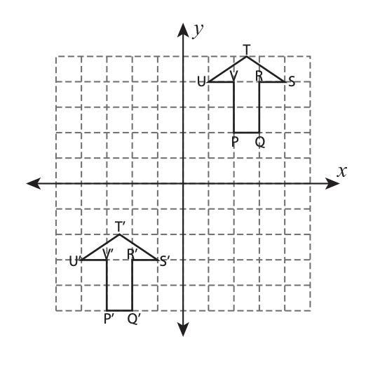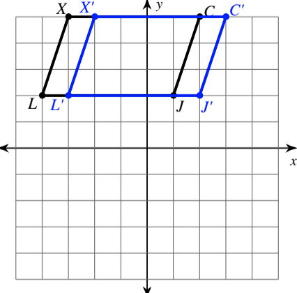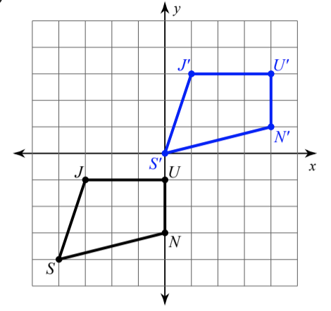 For example, for the following image, you would write "4 units left, 5 units up" because that is how much the original image (the image without the apostrophes) moved to get to the translated image (the image with the apostrophes).