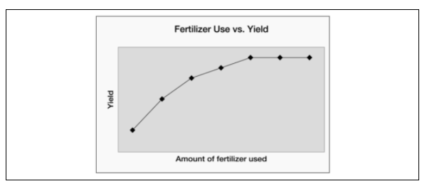 According to the graph, what is the relationship between amount of fertilizer and crop yield?