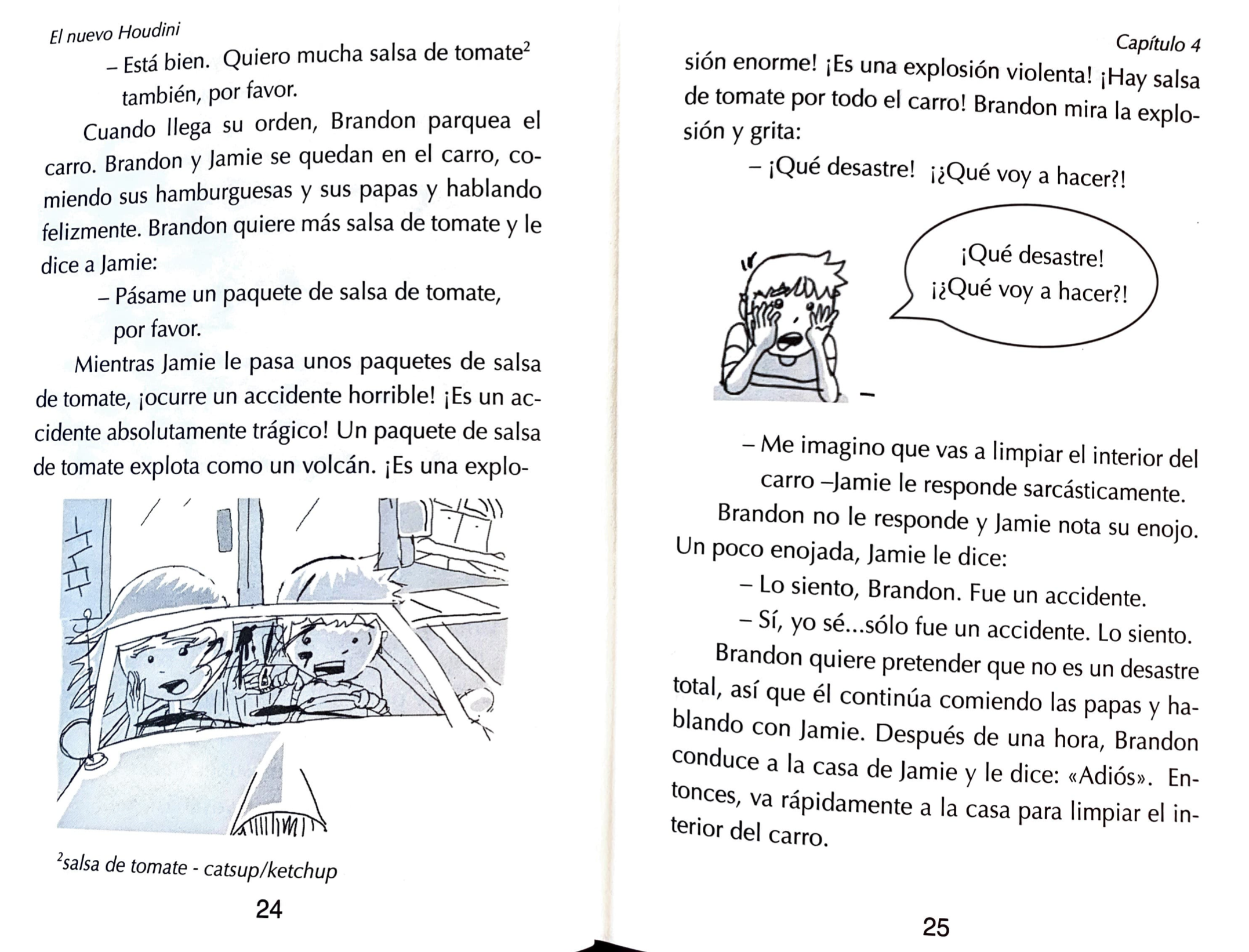 al llegar: upon arriving, -mente: -ly suffix (especialmente - especially), des- : dis- prefix (desagradable = disagreeable), gritar: to yell, durante: during, conducir: to drive, encontrarse: to find oneself, to meet up with, a todo volumen: turned up all the way, volcán: volcano, desastre: disaster, limpiar: to clean.
