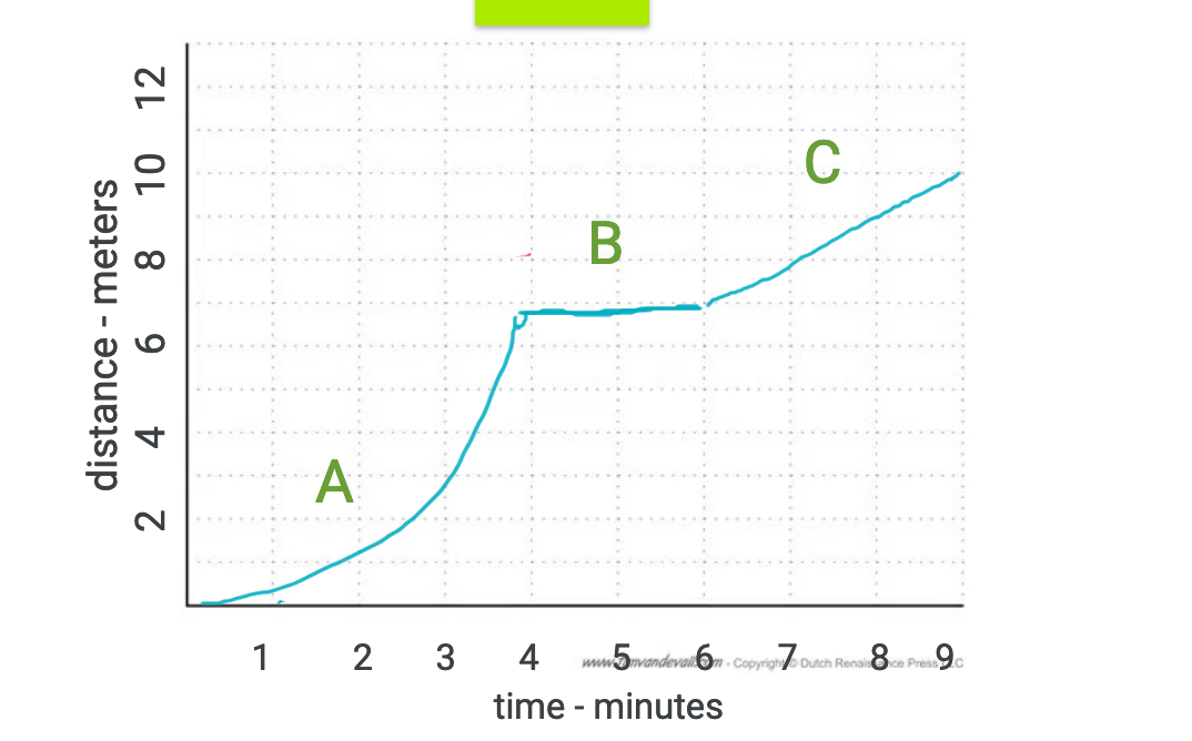Practice reading the graph. The graph shows a snail's wild journey through a garden. Match the three sections of the graph above with the description of the snail's motion during that time period.