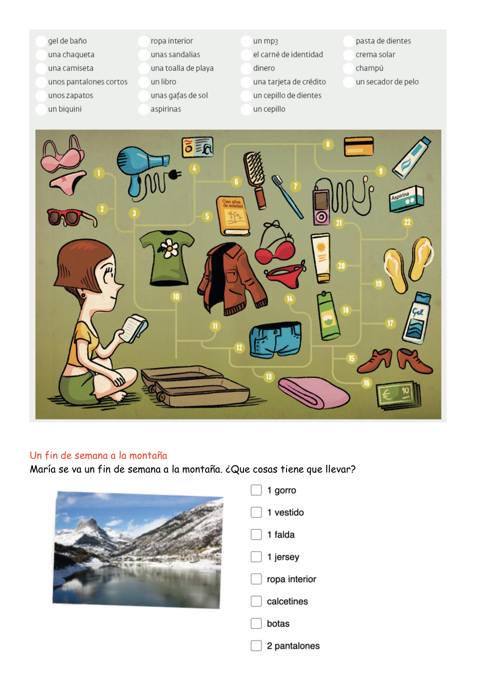 Para ir a la montaña, María tiene que llevar: