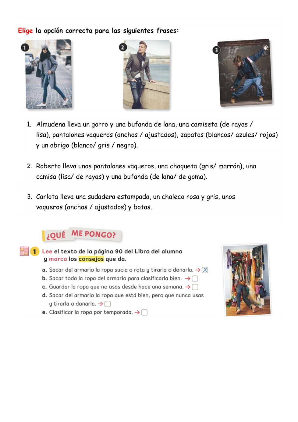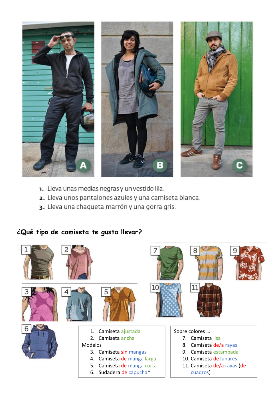 ¿Qué ropa prefieres? ¿Qué te gusta llevar? Escribe y usa palabras para hablar de la ropa. "Me gusta llevar...