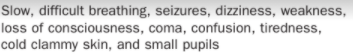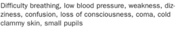 Which drug has the side effects of difficulty breathing, drowsiness, coma, low blood pressure, muscle twitches, blue fingernails and lips?