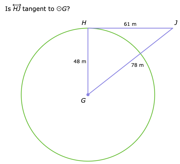 Determine whether HJ is tangent to circle G. Briefly explain how you can be certain whether HJ is tangent. Include all work that supports your argument.