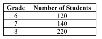 If the data were displayed in a circle graph, what percent of the graph would represent the 6th graders?
