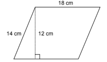 Find the area of a parallelogram with base 100 cm and height 42 cm.