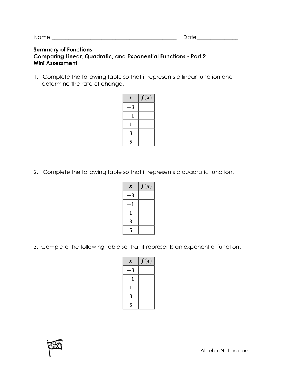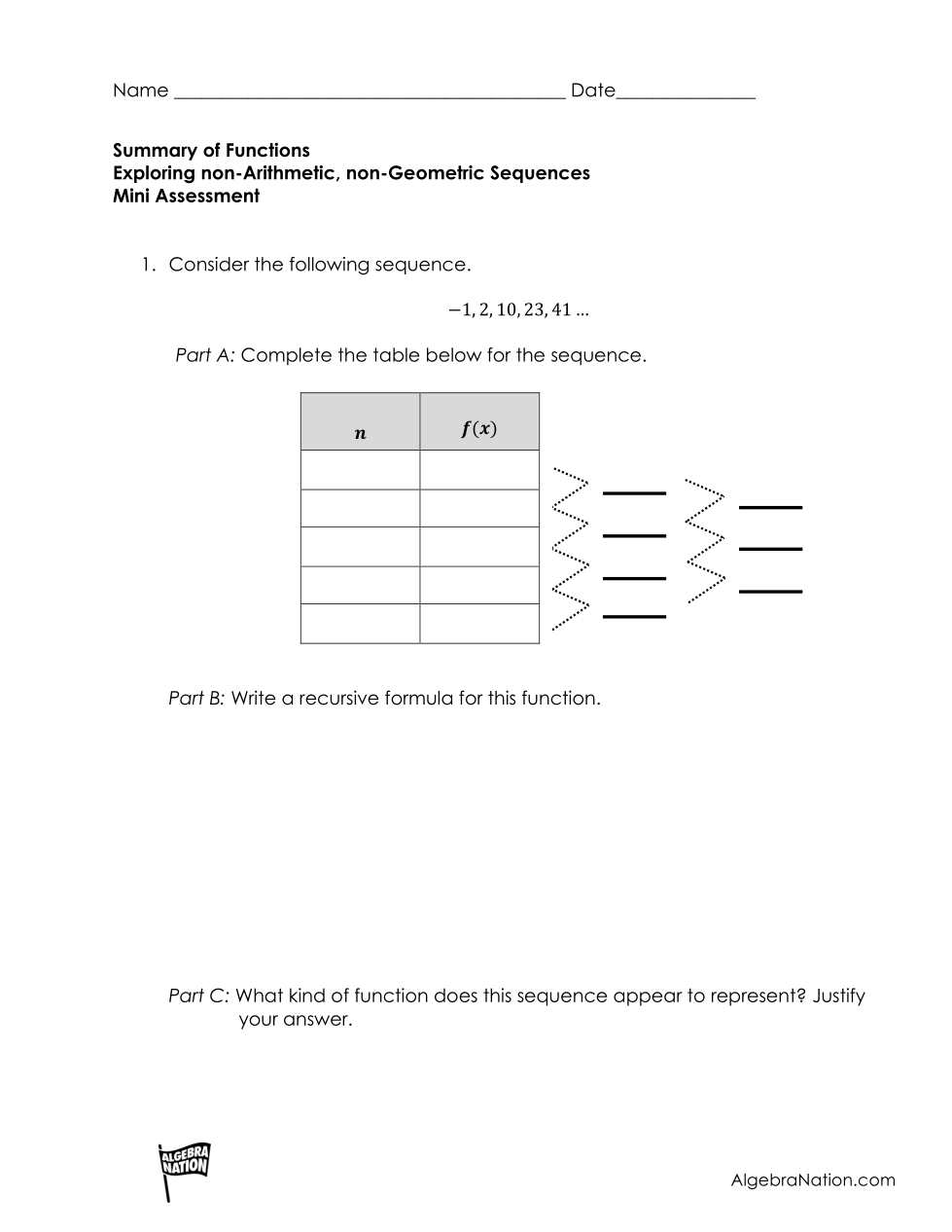 Use a separate sheet of paper of white board for your work. Fill in the correct number to complete the table. Remember what n represents if this is a table for a sequence.