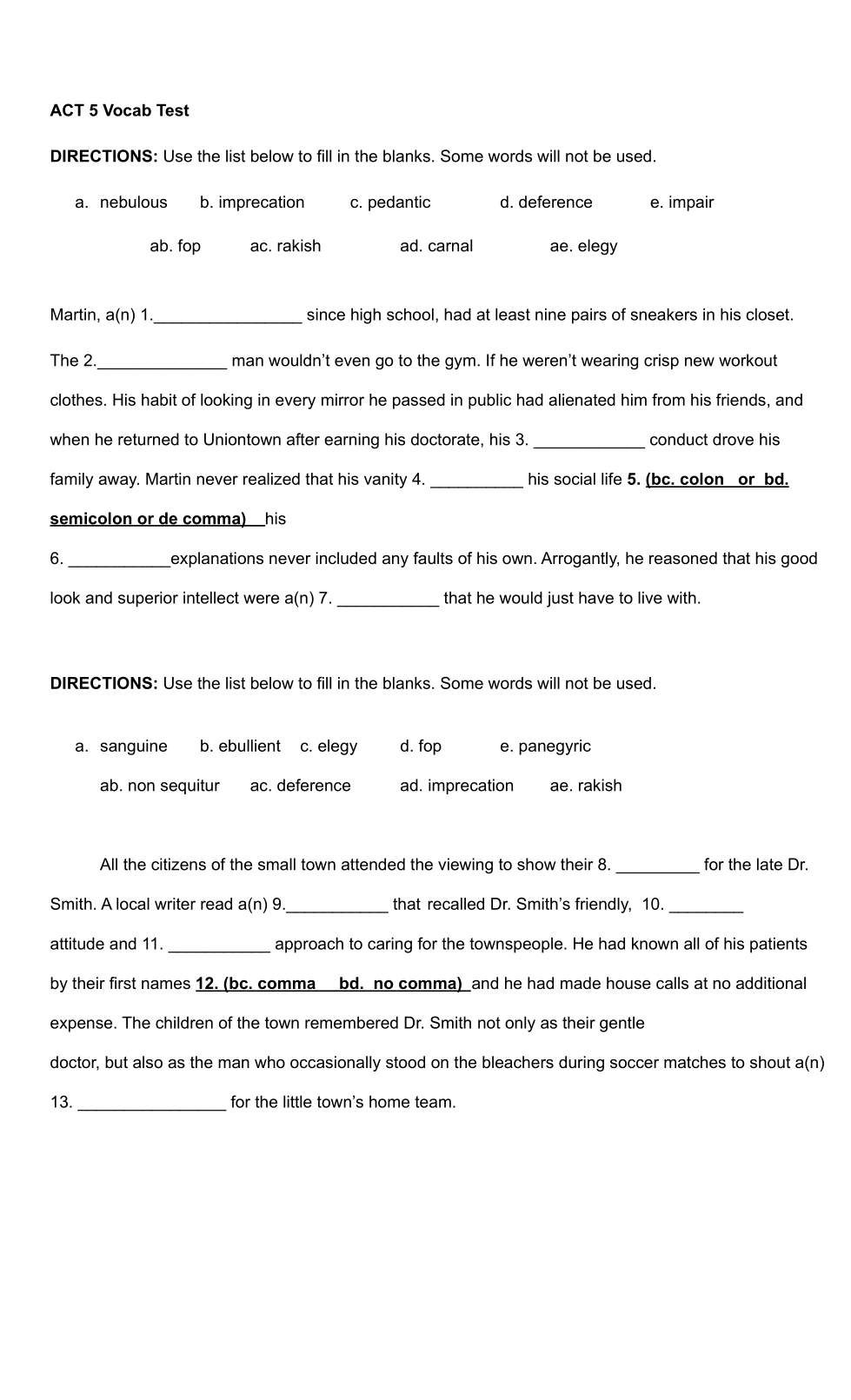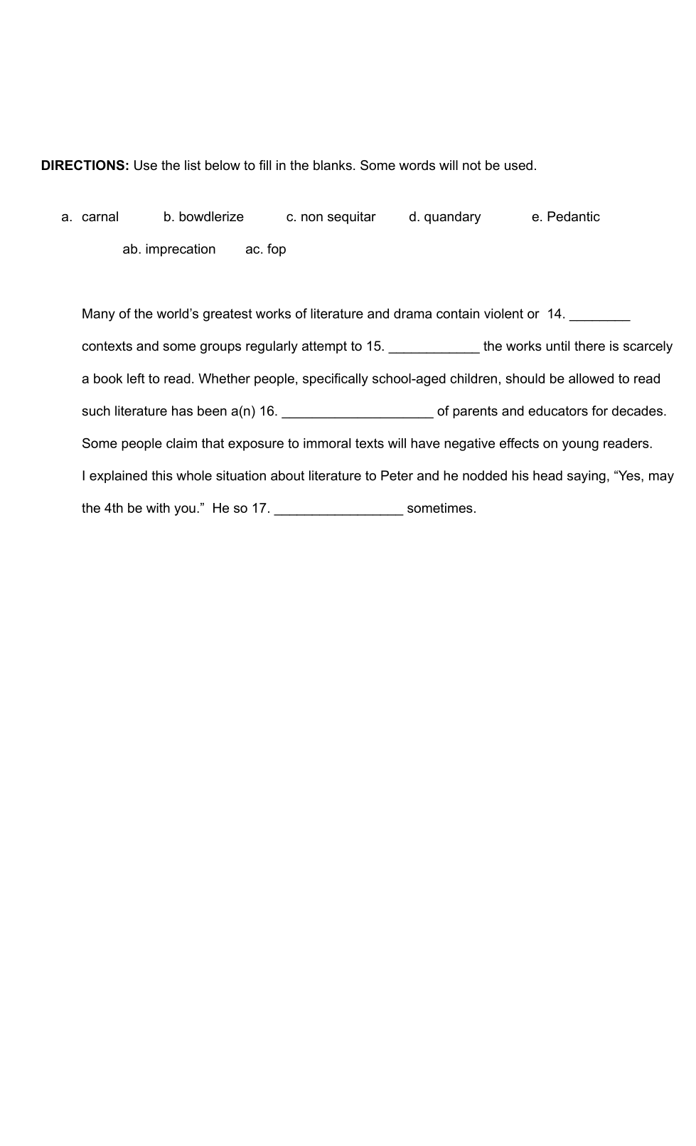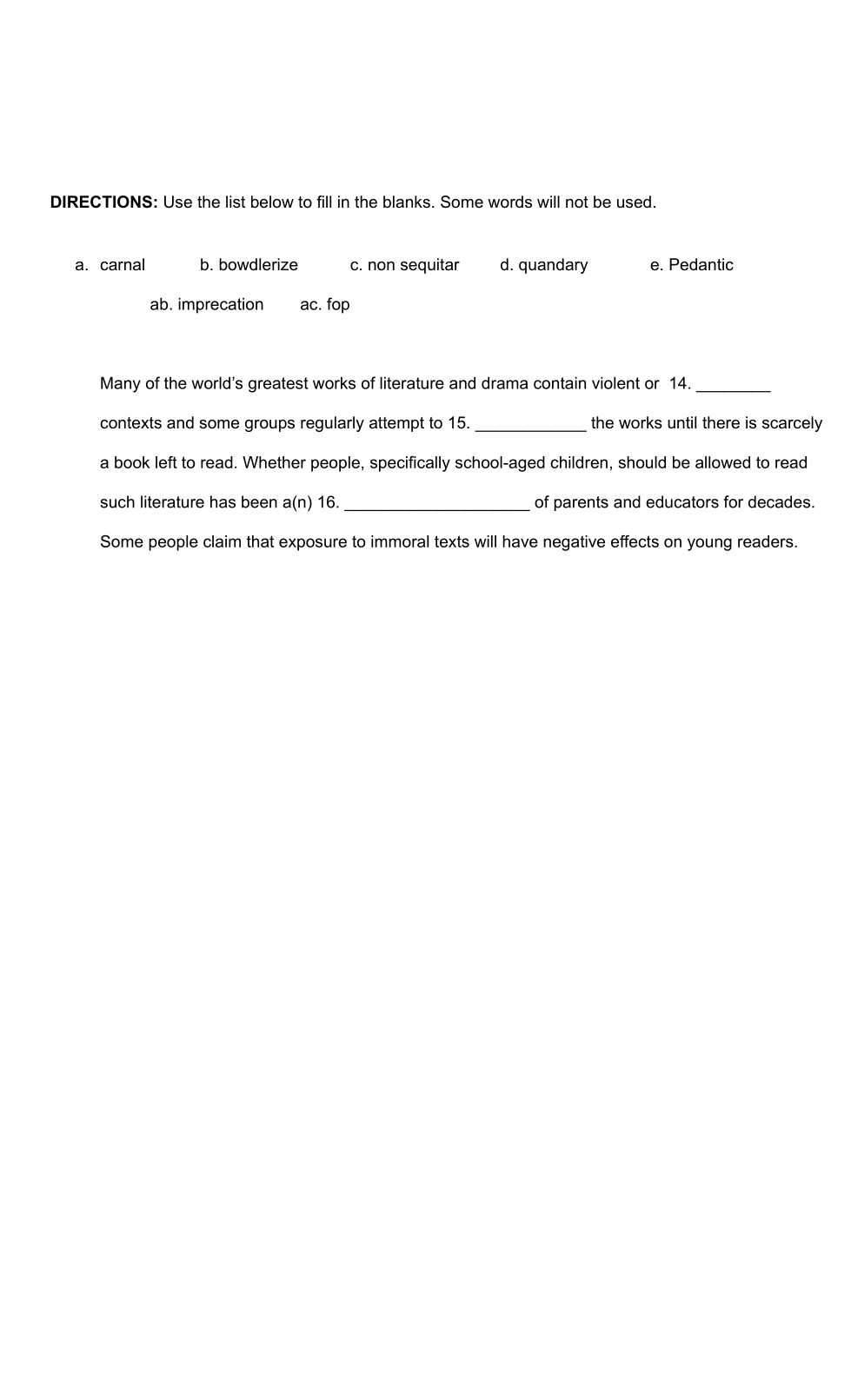 Fill in sentences using word bank.