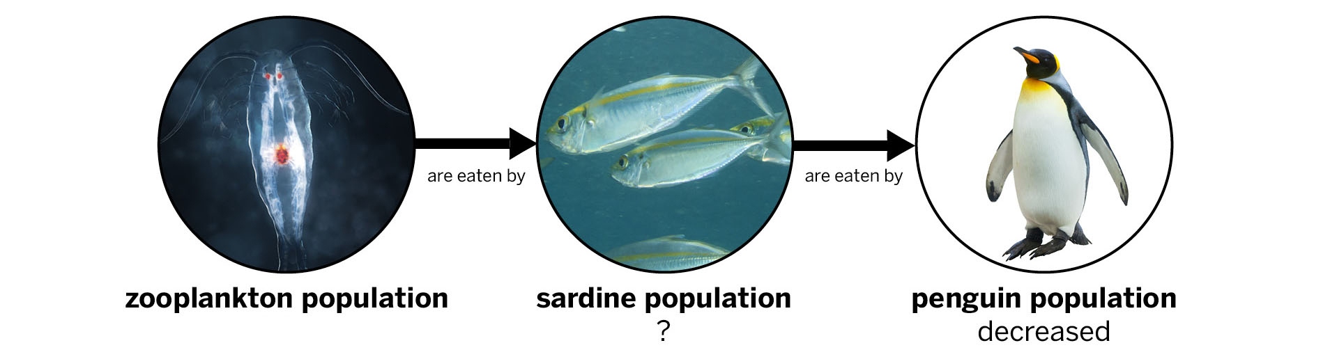 Scientists have been studying the size of three populations along the coast of Antarctica. In this ecosystem, penguins eat sardines (a type of small fish), and sardines eat zooplankton (very small animals that live in water). The data showed that all three populations were stable. Then the penguin population decreased suddenly. What will likely happen to the size of the sardine population as a result