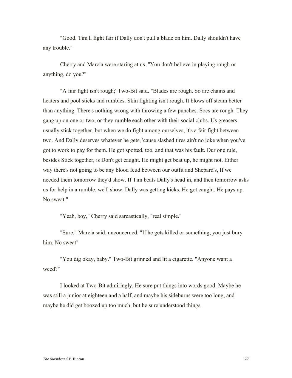Two-bit says a fist fight is fair, as long as there are no weapons. Do you agree?