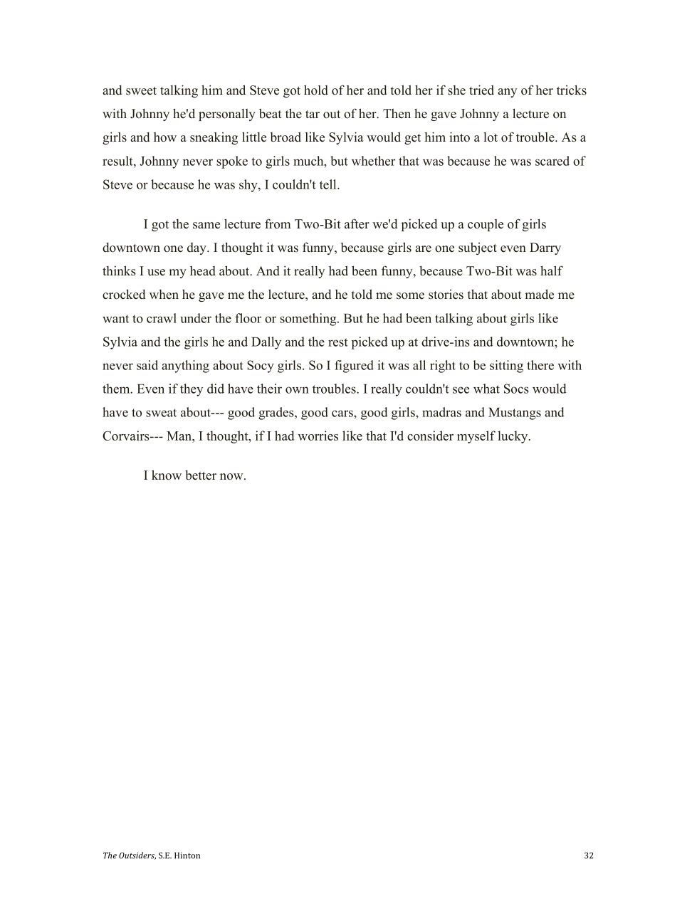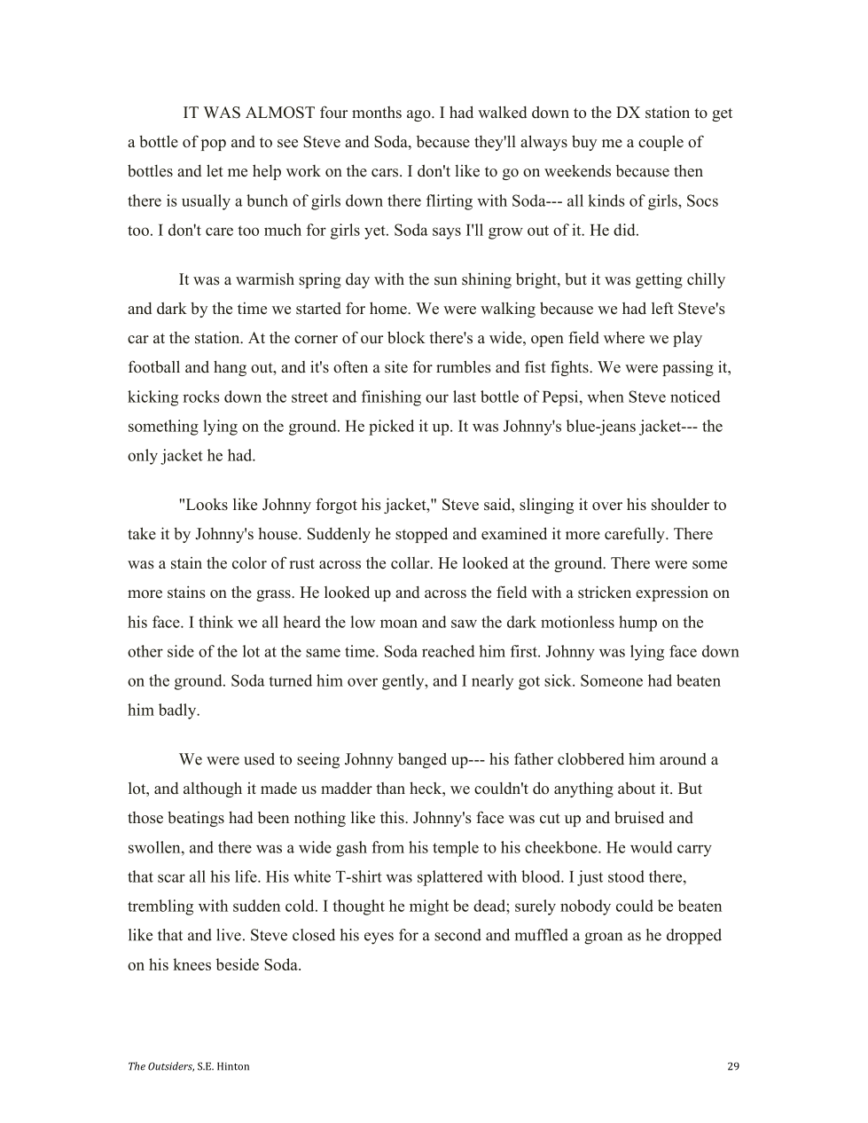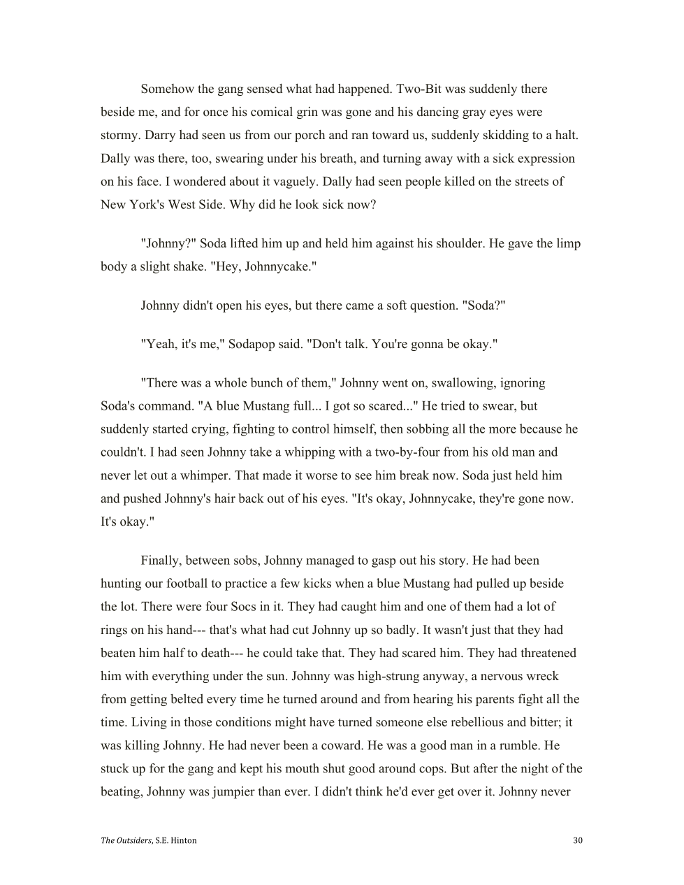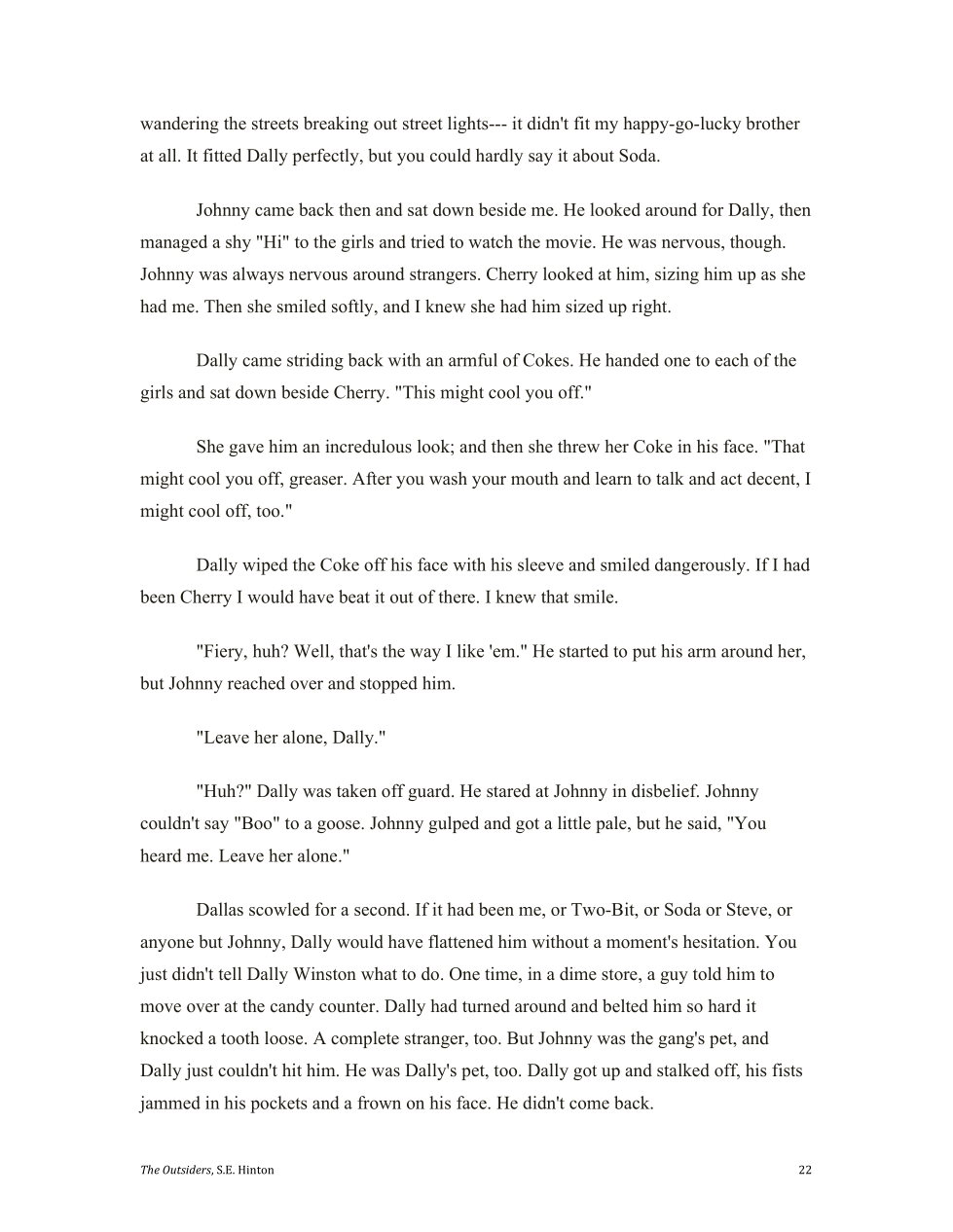 Cherry notices that Johnny really got messed up by the socs jumping him.